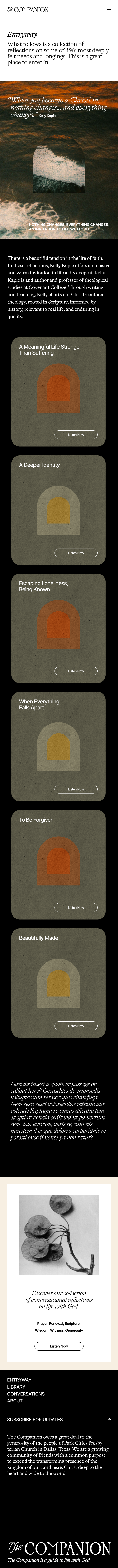 The result is a user journey designed to feel calm, welcoming, and immersive—supporting the reflective nature of the platform itself.